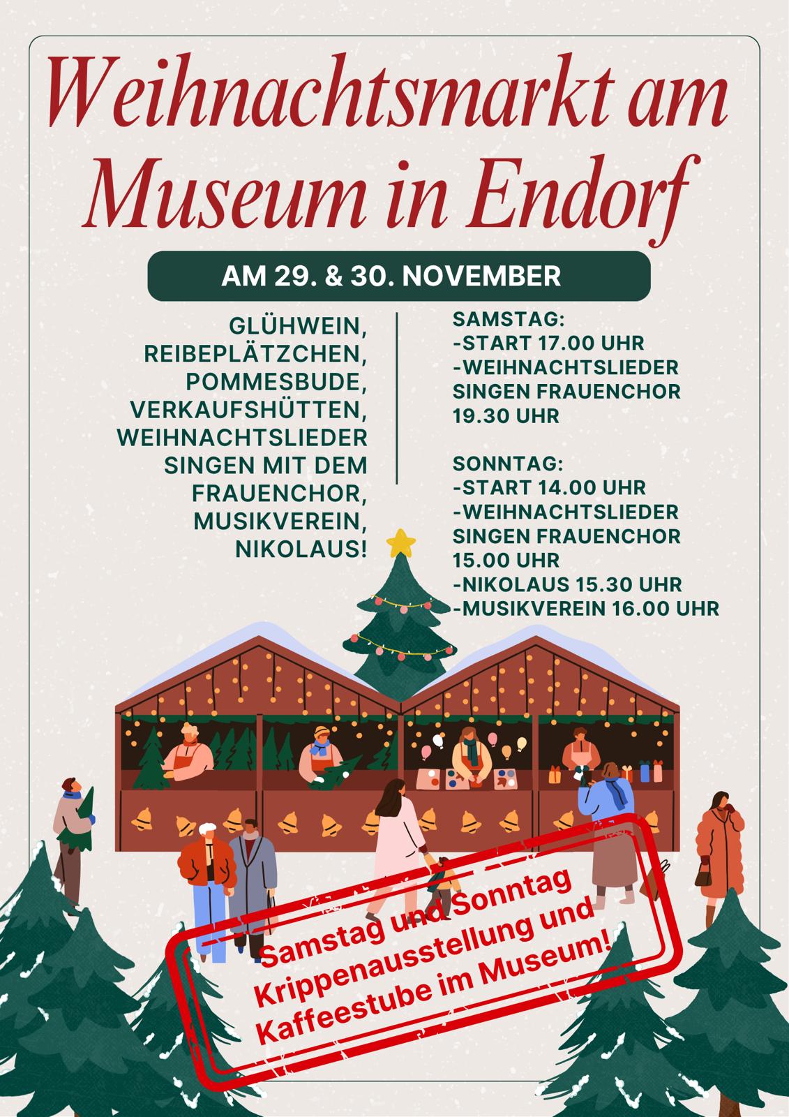 Festliche Premiere in historischem Ambiente: Erstmals findet der Endorfer Weihnachtsmarkt in diesem Jahr am Heimatmuseum Alte Schmitte statt. Gemeinsam mit dem Museumsverein richtet der Heimatverein Endorf das stimmungsvolle Adventswochenende aus – und das zum ersten Mal bereits am 1. Adventswochenende, am 29. und 30. November.